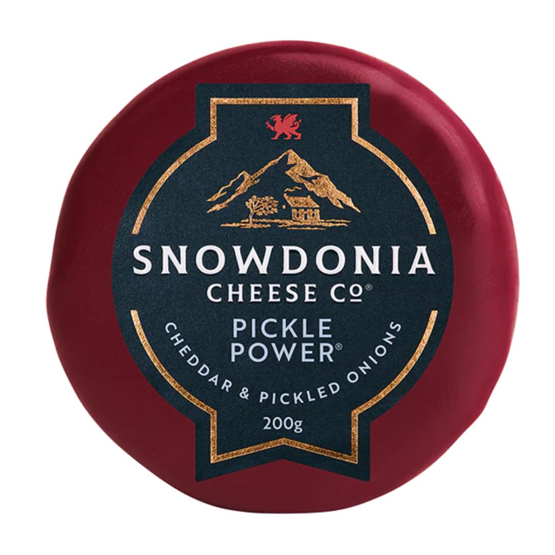 Snowdonia Pickle Power is a tangy, flavour-packed cheddar with hints of pickle. Its creamy texture balances the zesty notes, making it perfect for cheeseboards, sandwiches, or adding a playful twist to everyday dishes.