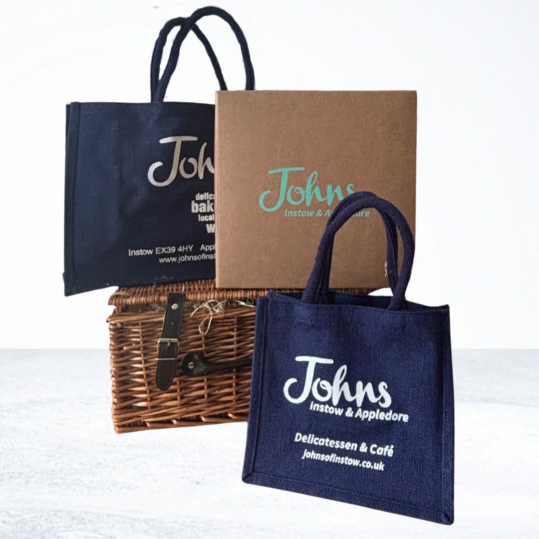 | Choose your Hamper | Large Square Hamper Box, Large Wicker Basket, Large Johns Jute Bag, Small Johns Jute Bag |