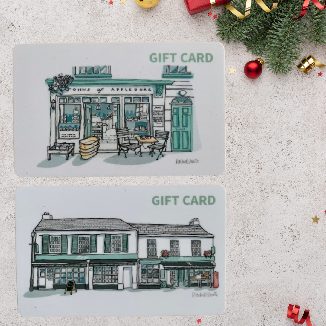 Introducing our NEW gift cards designed by local artist Rachel Shute. The perfect gift for a lover of local produce! Choose from £10, £25, £50, or £100. Gift cards can be used in our delis, cafes and grocers and in both our Appledore & Instow stores.